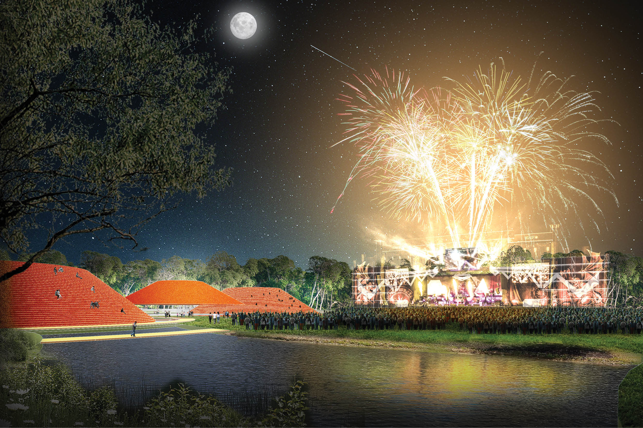 A well-designed communal park is one that can accommodate various communal activities such as sports, gatherings, leisurely walks with pets, play, and even large-scale events. Such grand events further amplify the importance of public spaces, having the potential to draw both local and international tourists, thus acting as a catalyst for economic growth. Located on a spacious 16-hectare site, this flexible communal park is designed with the intention to serve as an everyday recreational space for the community while also hosting major concerts on occasions.