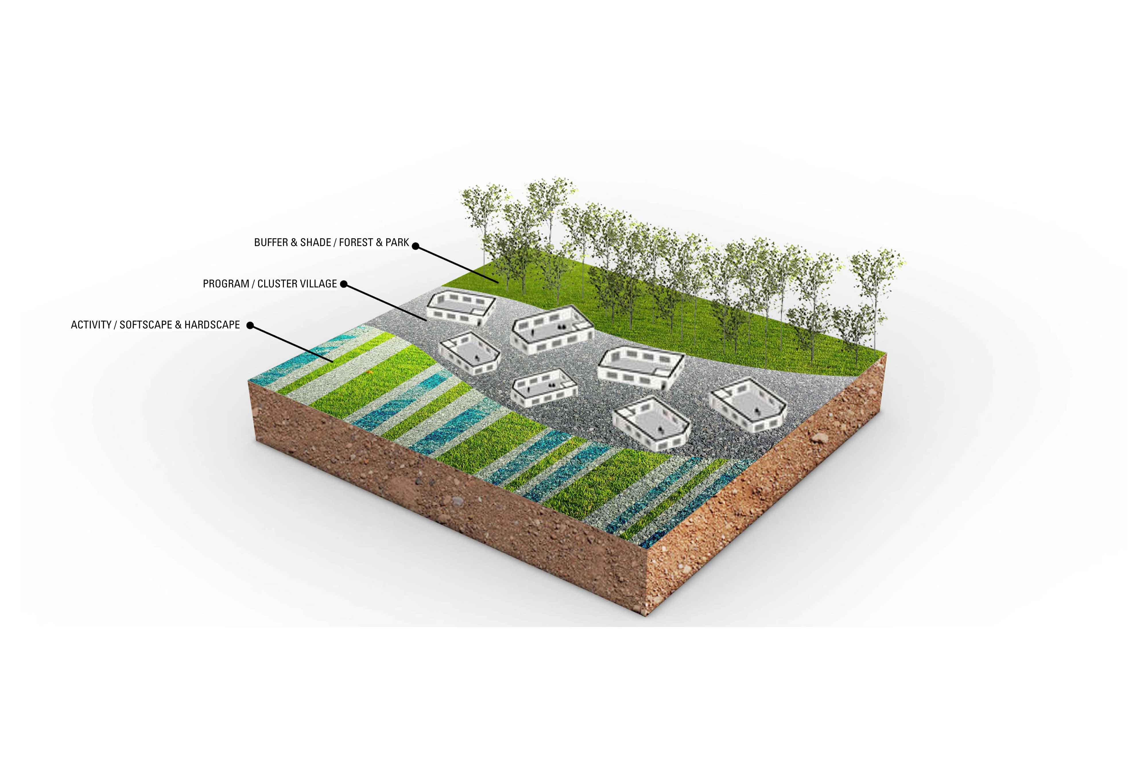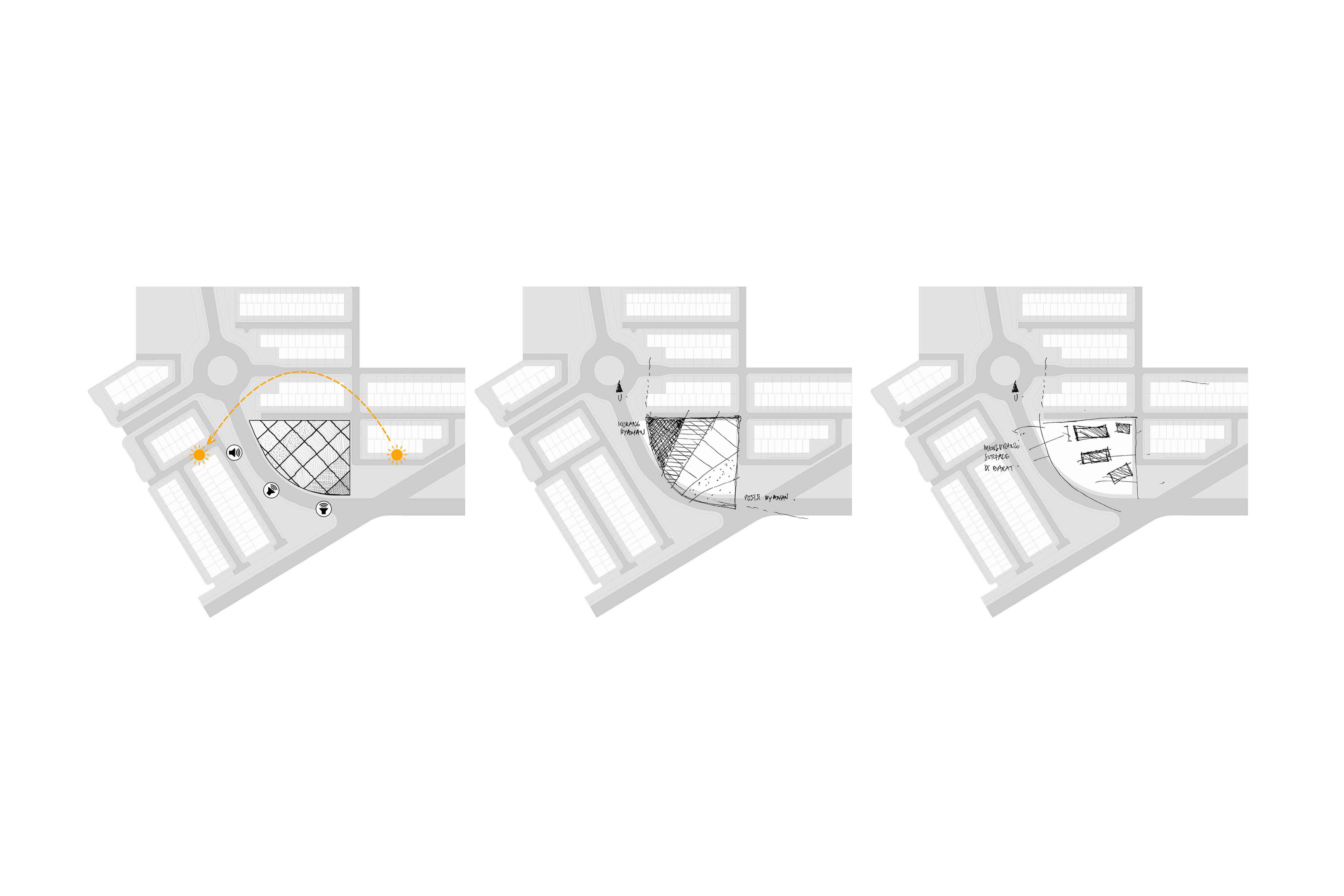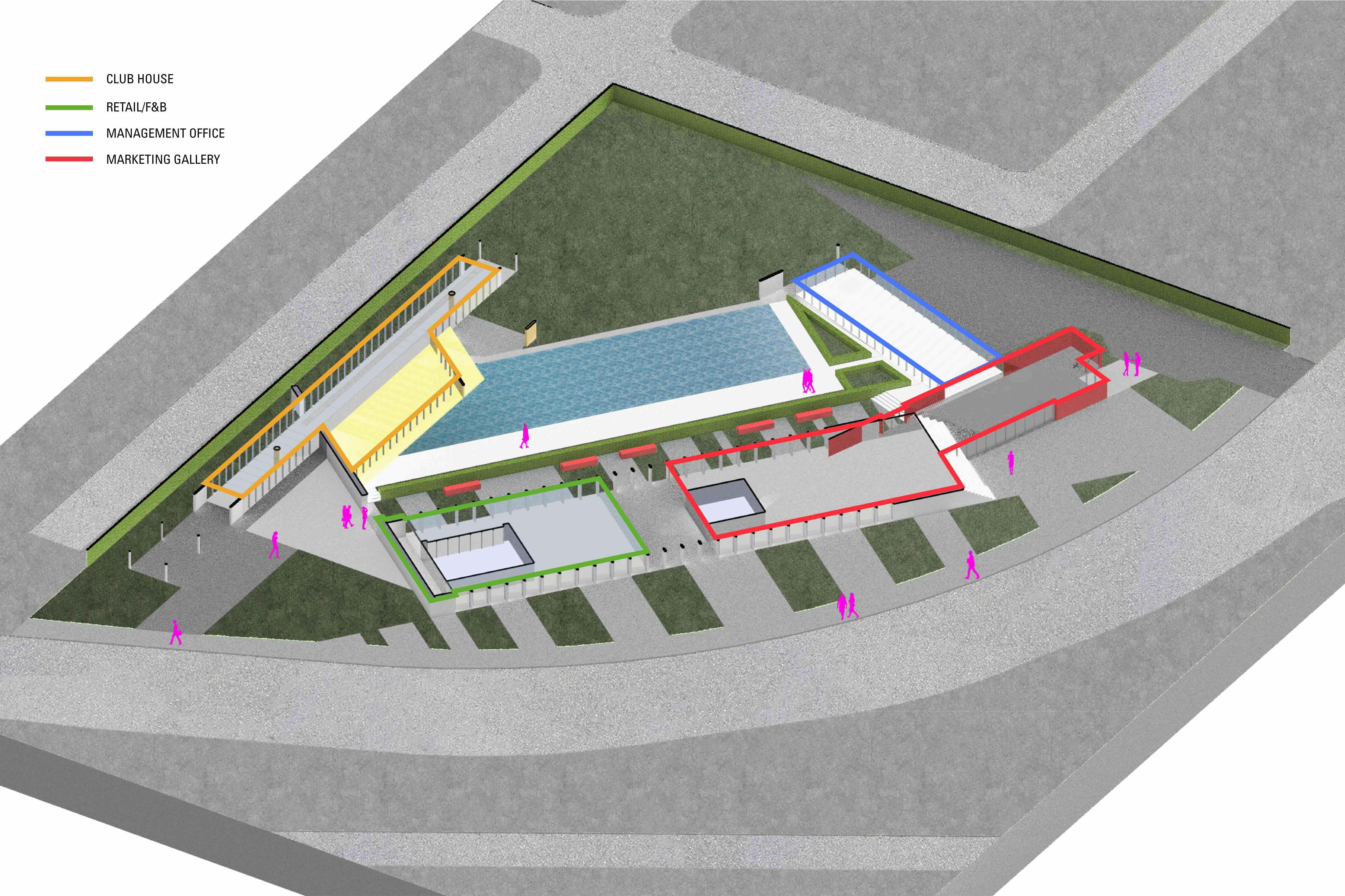 Situated at Semanan, Jakarta - the 4000 sqm Citra Semanan is a part of the latest Ciputra’s housing development. The project has a multipurpose function including Clubhouse, Marketing Gallery and Retail Area next to the existing Marketing Office. The Site is located within the housing clusters, which has a potential aspect of becoming a green point for the area as well as a community place for the residents. On optimizing that potential it is decided that landscape elements such as greenery and water features to be pinned down as the main features, therefore, influencing the arrangement of the building. We also reckon that the arrangement of the landscape features has to support the functions intended. As the place of interaction and relaxation conducive spaces are needed, It is required to have comfort in terms of noise, thermal and visuals. Which are influenced by the vehicle circulation on the main road and the location of the site based on the sun trajectory. This then influences the placement of the functions based on the needs to repel noise and the urge to minimize elongated surface facing east and west side of the site. Our approach then resulted in the formation of pocket spaces within the building, each feature required landscape features (buffering noises, shading the respective spaces, accommodating social space) making our design have a dialogue within its surrounding and between the building on the site.