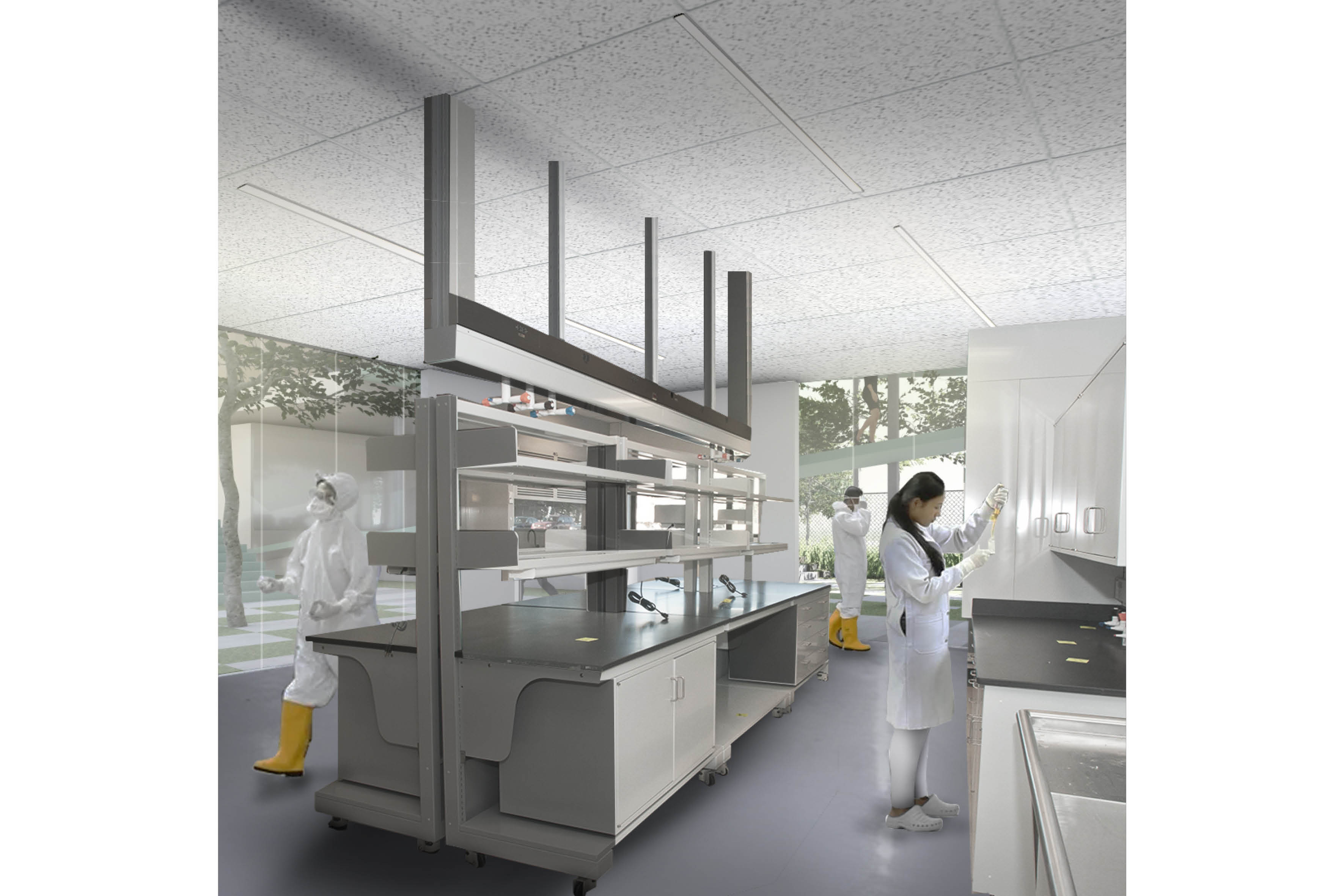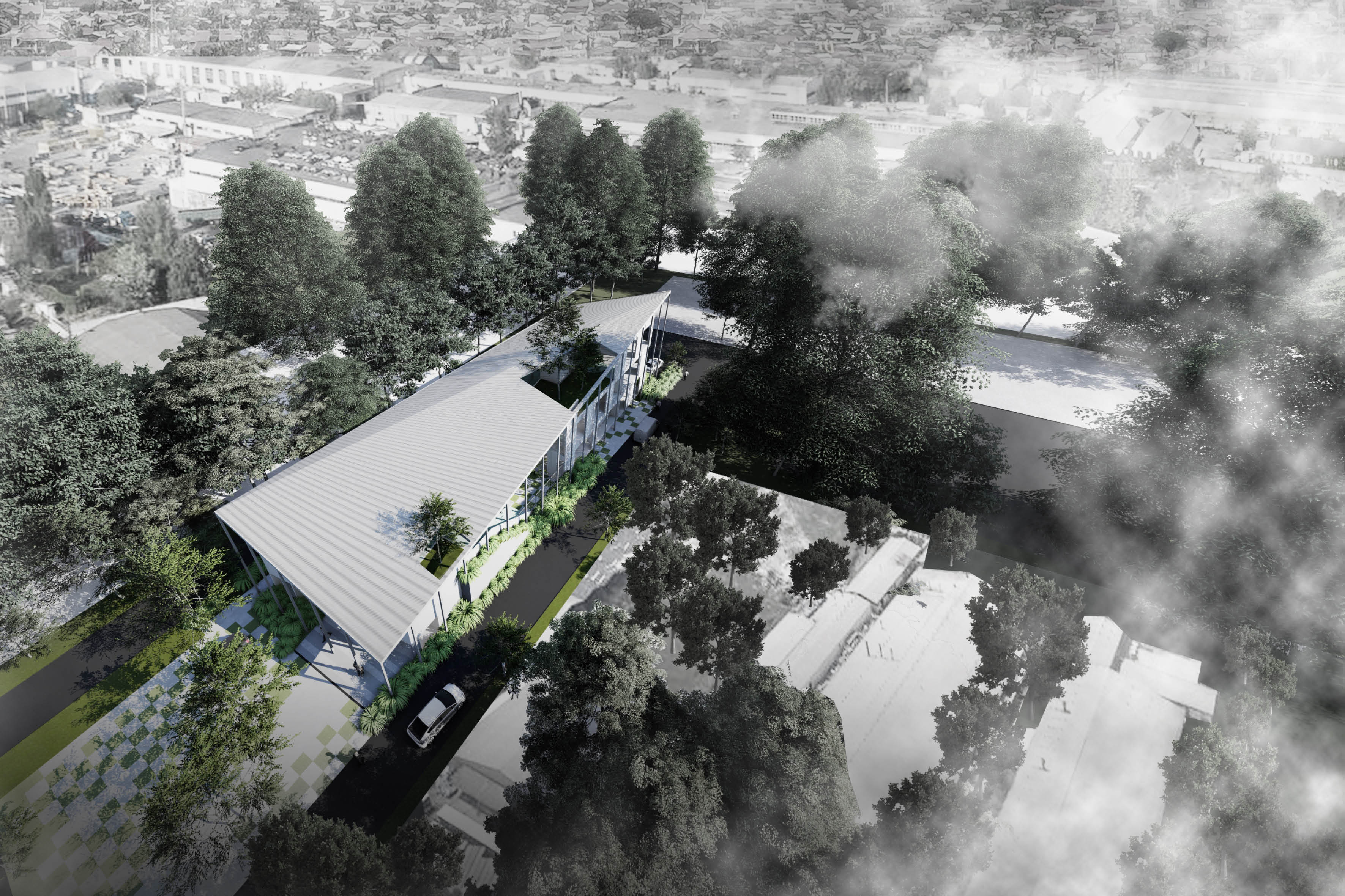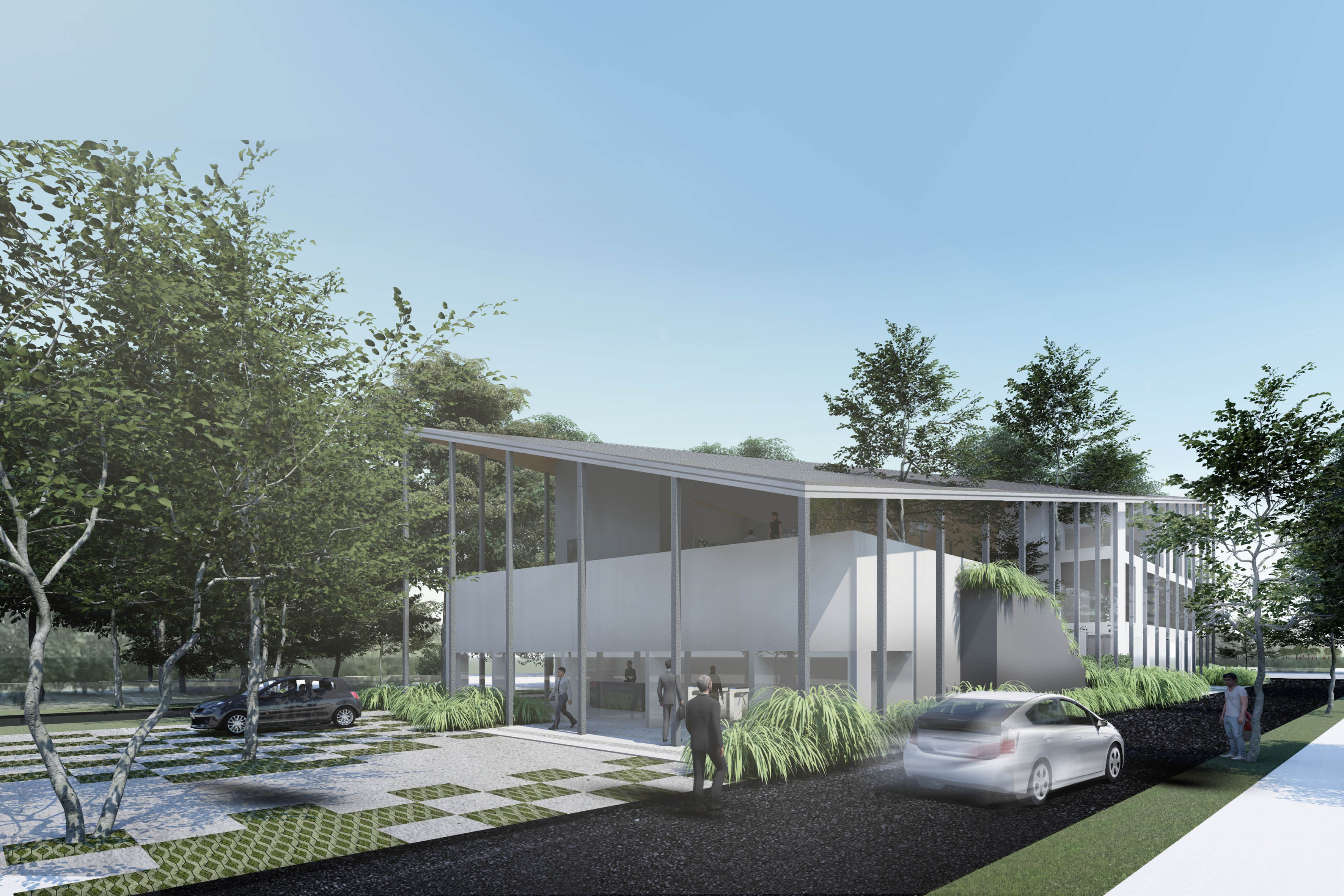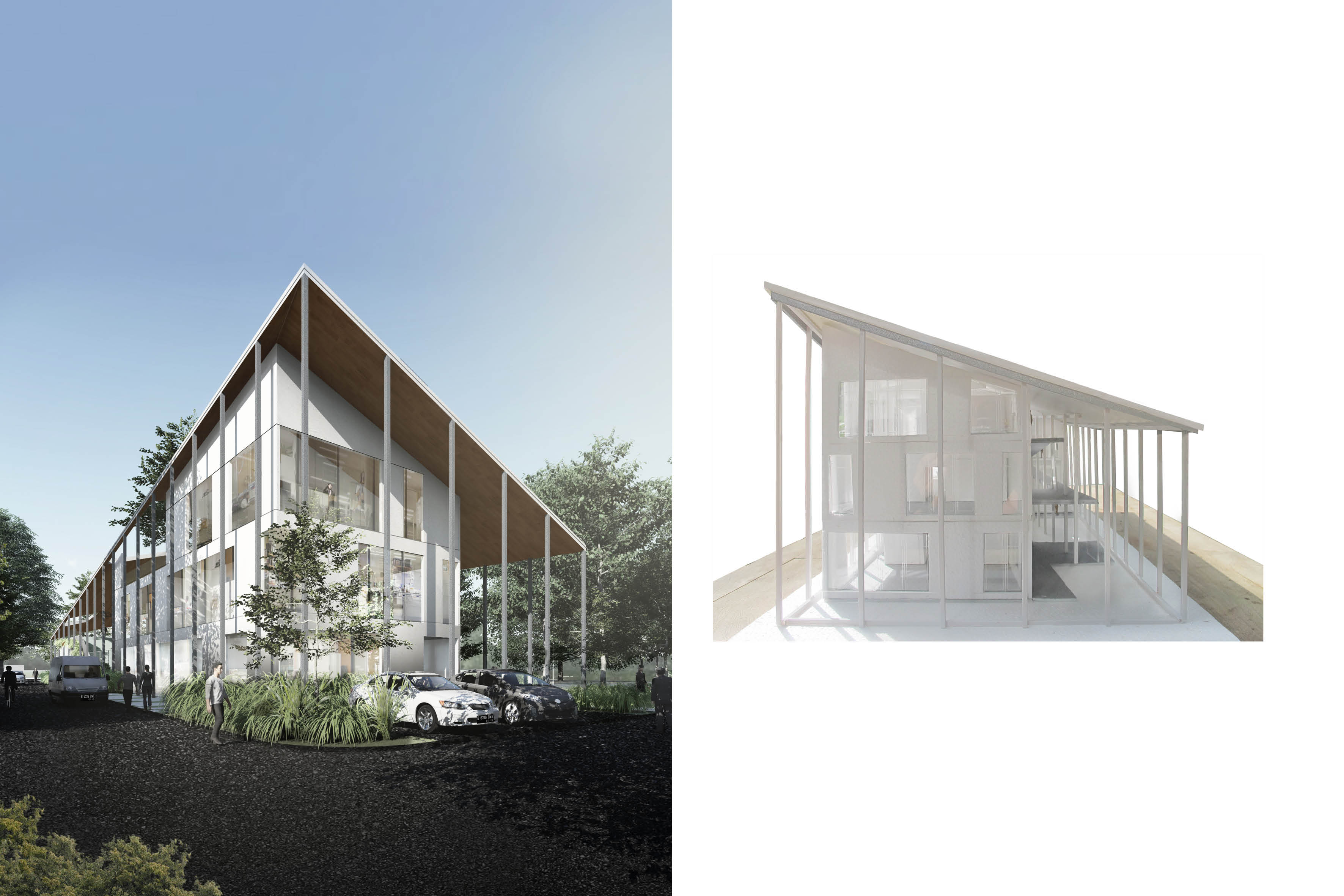 PT. STERIN LABORATORIES is a domestic medical device manufacturer producing disinfectant liquids for hospitals. Situated in the industrial area of Cibaligo, Cimahi among other huge scale factories in the area, its new headquarters will encompass offices, laboratories, and public functions that will make up half of the total site area facing the main road.