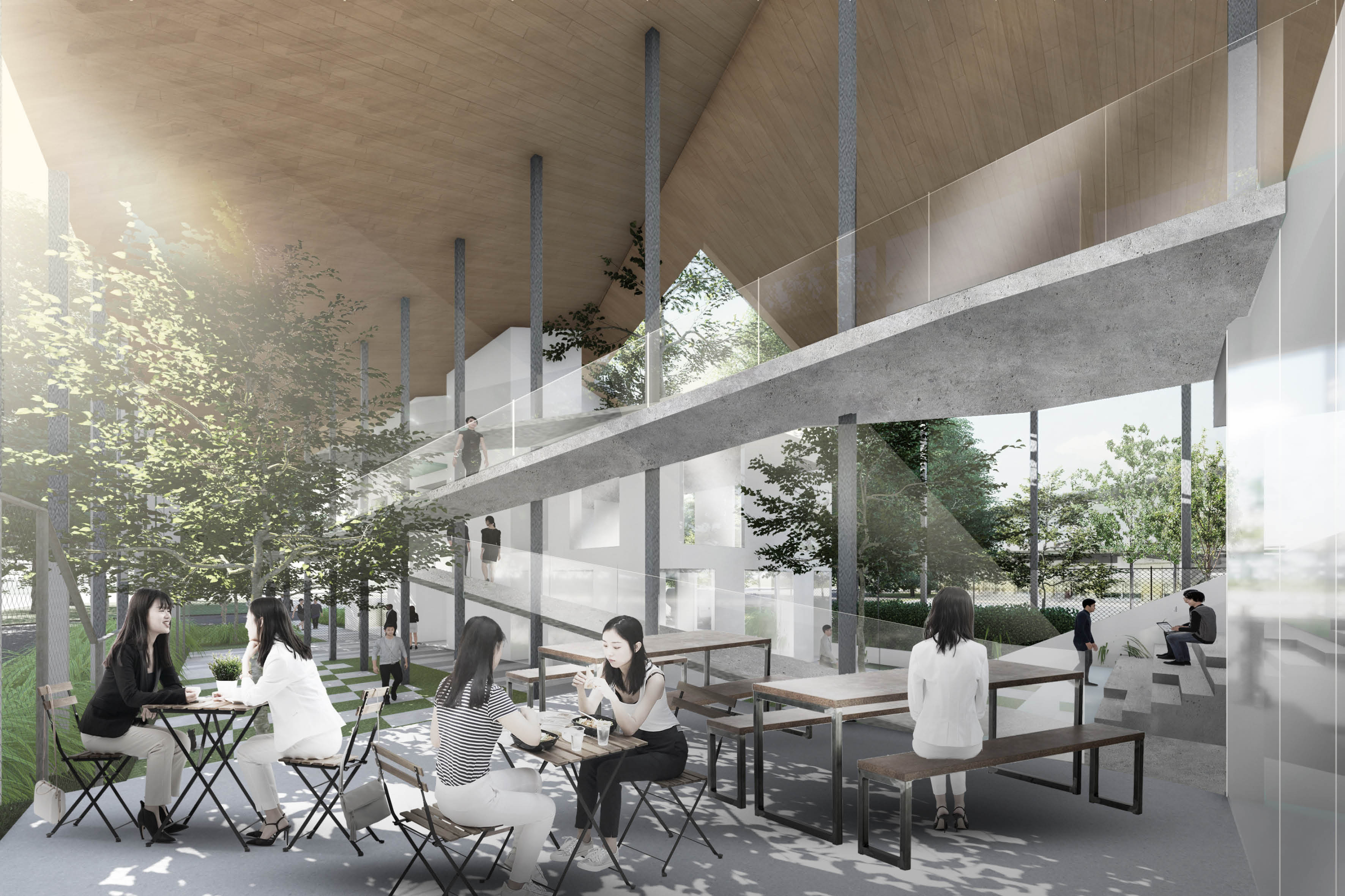 Never seen before pharmacy headquarters, Sterin Research Bloc envisions an unconventional yet comfortable office environment which perfectly blends work efficiency and open-for-public recreation.